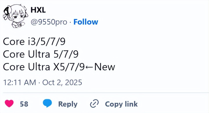 又双叒叕是新名字! Intel酷睿Ultra X处理器来了